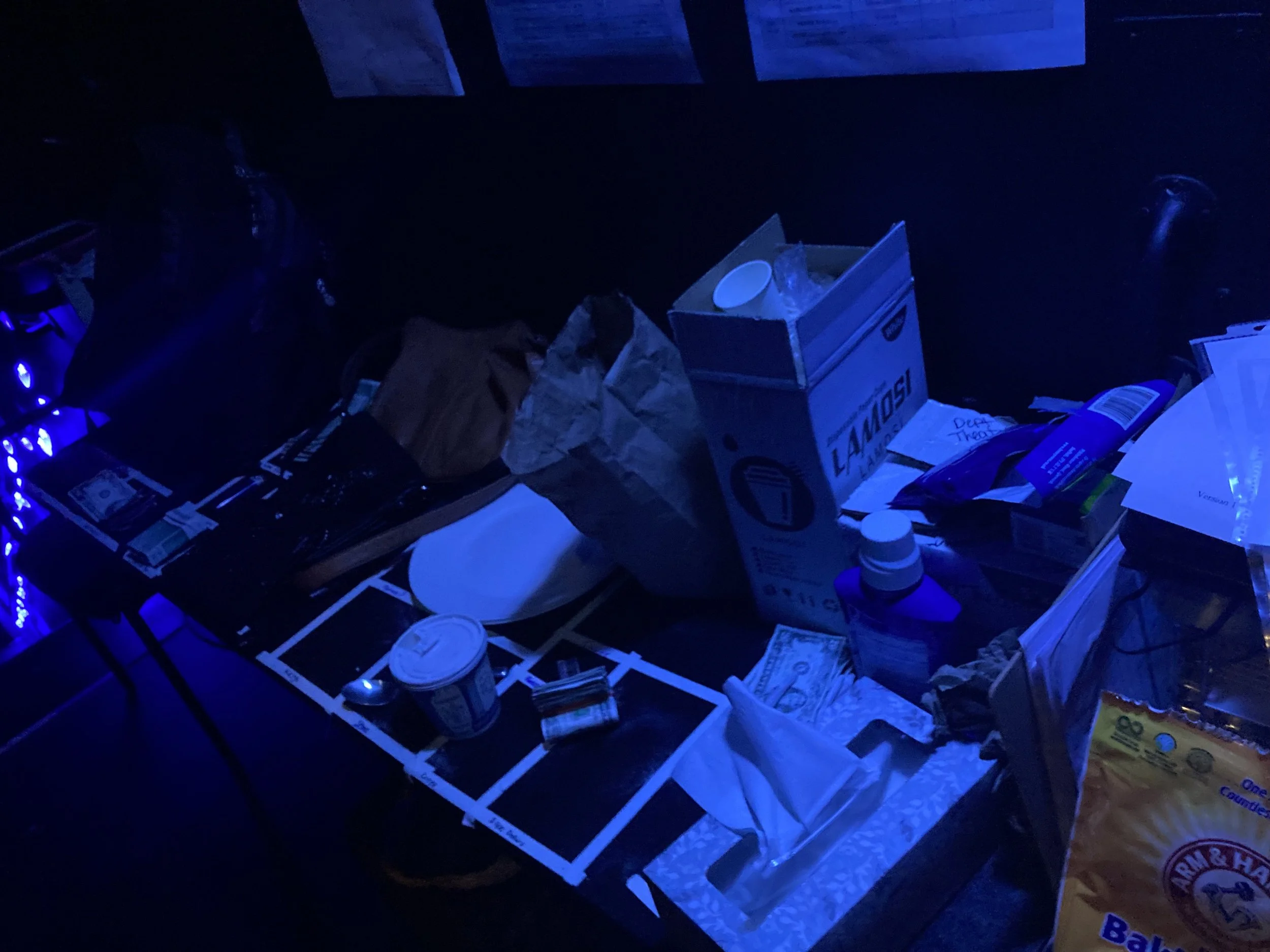 Immersive utilization of theatre venue (including the booth, scene shop, & audience rows)